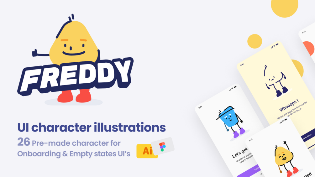 Now meet our modern Freddy – friendly, charming, and perfectly tailored for app and web UIs with 26 Pre-made character for Onboarding & Empty states UI’s