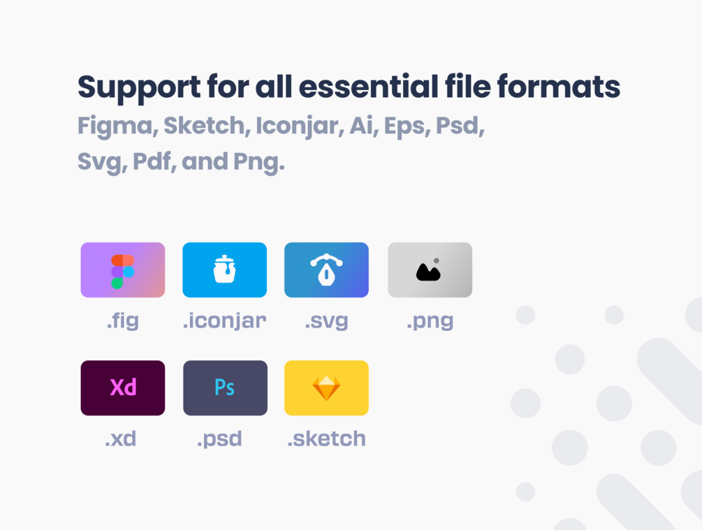- Compatible with Figma, Sketch, Adobe Illustrator, Photoshop, XD.