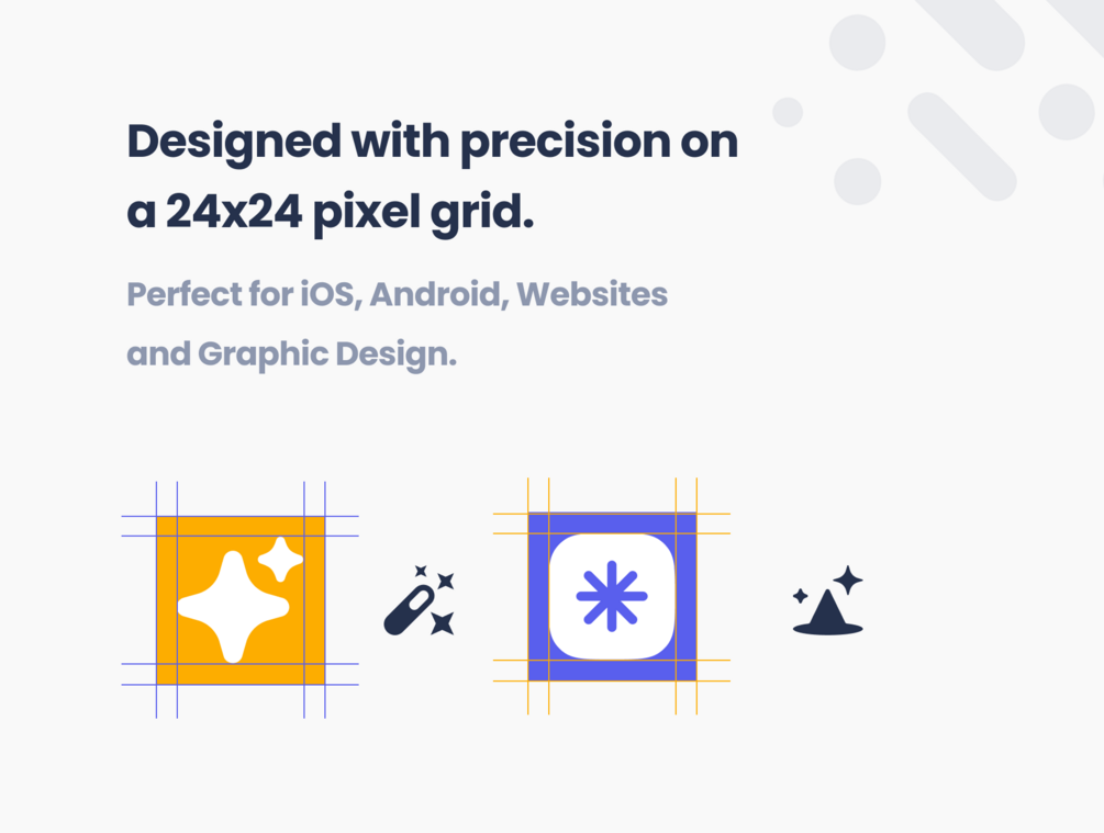 It is built on a 24 x 24 pixel-grid, Perfect for iOS, Android, Websites and Graphic Design.